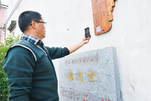 浙江杭州桐庐县江南镇环溪村内的尚志堂、爱莲堂等许多古建筑、景点大门旁如今都挂有一块印有二维码的门牌,游客只需拿出随身携带的手机扫一扫,便可立马观看该景点的具体介绍,非常便利。