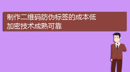 制作二维码防伪标签的成本低,信息可以随载体移动,不能依靠数据库和计算机网络,具有可靠、、防伪功能强等优点。随着微信的普及,微信扫描二维码已成为用户的习惯,使用二维码作为防伪标签有利于与消费者的互动。