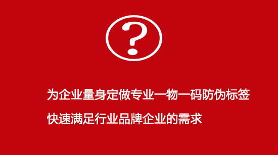 为企业打造专业的一物一码防伪标签,该标签可以为产品进行防伪,一款防伪在防伪的同时,可以根据企业需求完成防经销商窜货、溯源、积分、大数据分析等一系列增值功能。