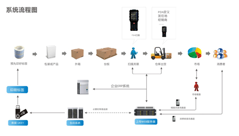 2.同时产生两级或三级编码(中包装和大包装相关的对应码),在产品装箱或入库时贴对应的防窜货标签条码