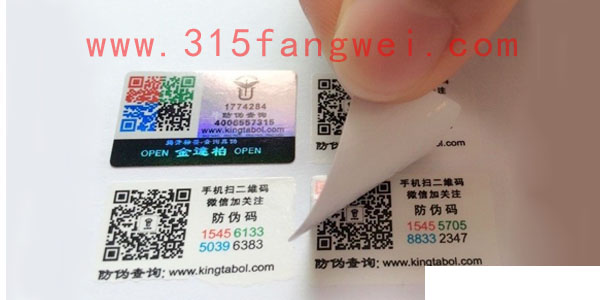 防伪标签工厂是十分多的,据不完全统计,如今国内有5万多家,而真实具有、答应天资的只有300多家,并且防伪标签的类型也挺多,有激光防伪标签、电码防伪标签、二维码防伪标签、掀开留底防伪标签 、温变防伪标签、湿敏防伪标签、荧光防伪标签、RFID防伪标签等等。关于不一样的防伪标签工厂出产出的产品质量也是参差不齐的,因为印刷后的作用通常取决于印刷设备、收购资料、印刷技师等,315防伪在长达14年的防伪进程中,积累了大量的实战经验,独立的防伪标签印刷工厂,安全安稳的供给环境,得到了良好的市场口碑。