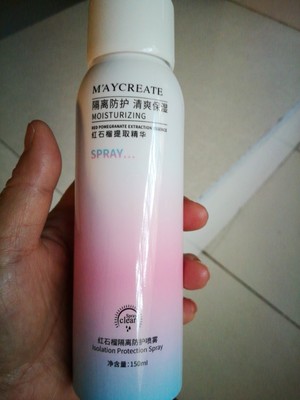 这款防晒隔离霜产品质量好。喷在手上白白的,香香的,非常满意,价格实惠发货快,还有面膜擦手霜。挺好的,送了防晒霜小样和三片美白面膜。用起来的确很清爽,刚抹完就用水洗的话,掉妆不太明显,防晒应该不错。