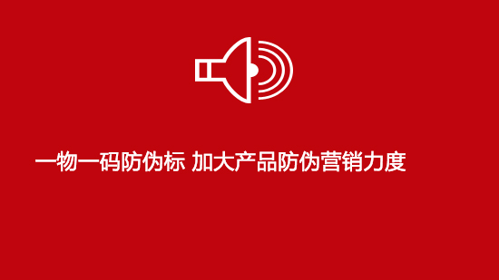 加大产品防伪营销力度,实现全周期品牌产品管理。一物一码防伪标,一套系统,可同时完成,防止分销商窜货,防伪产品,数字化营销等。从而达到一个目的,全程管理运营产品。