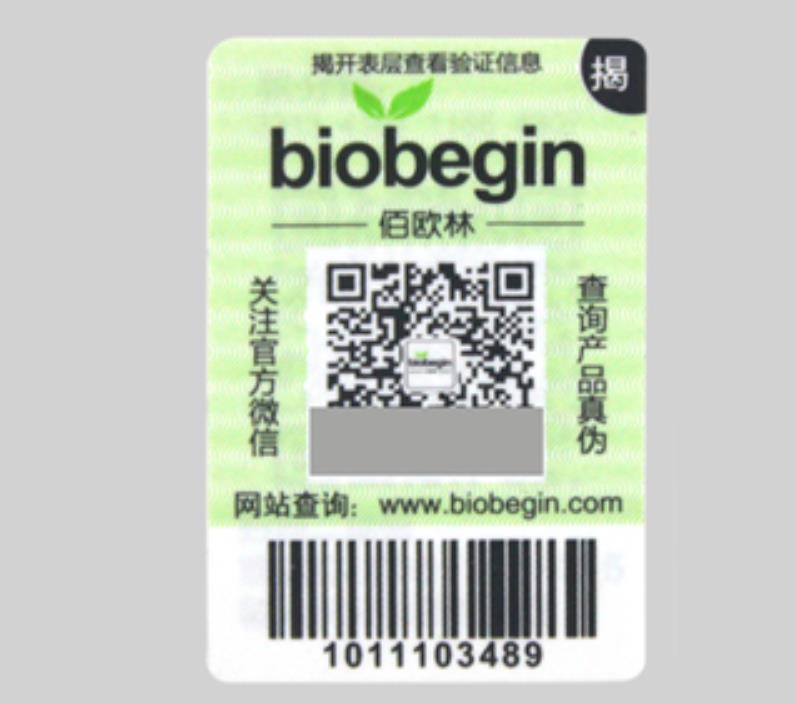 以上条形码可在后台查询产品的销售区域和运输物流信息。根据不同的防伪标签类别,可以选择不同的标签原材料,大多数客户选择纸不干胶、PET或聚氯乙烯,有些客户选择激光标签。
