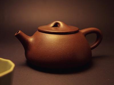 二是用开水试。将刚烧开的水倒进壶内并沿着壶身浇下,盖上壶盖。你会看到水不是顺着往下流,而是被慢慢吸干;壶盖上则先是慢慢湿润,而后又慢慢吸干。这是紫砂壶拥有双层气孔,透气、好的表现。