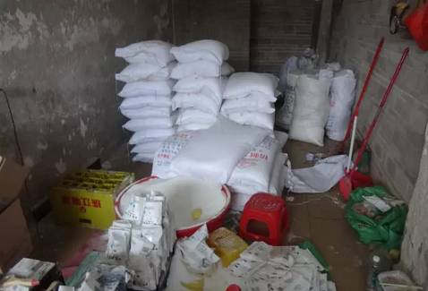 随后,警方展开捣毁黑窝点行动。该窝点位于龙归南岭村一间隐匿在零星厂房及建材市场间的独栋出租屋中,不法分子租下出租屋一楼的两间档口,一间用于制造、包装假盐,另一间用来存放假盐及自住。窝点生产假盐的时间十分不固定,一般都是生产一批就运走一批,不会长期留存。