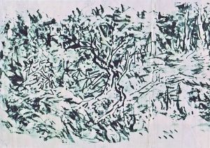 黄宾虹的这一运笔习惯,也是鉴别其画作真伪的关键点所在。他的画里经常会出现一笔下去出现两个线条,这是逆锋运笔的结果,假画里则没有这个特征。