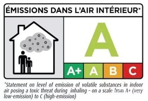 法国这项强制、进行标注的认证,它针对法国市场上所有销售的建材产品,分为A+/A/B/C四级(A+为、高级)。它的检测方式是将涂料样品用于欧洲标准房间内,通风存放28天后进行检测,规定TVOC<1000(ug/m?),甲醛<10(ug/m?),乙醛<200(ug/m?)。