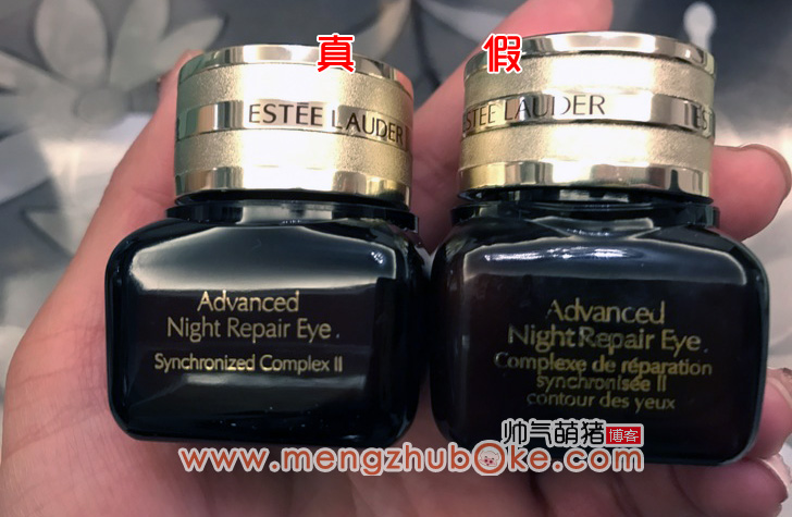 朋友在一蓝冠店里买到假的雅诗兰黛套装了,其中就有这款很多人喜欢用的眼霜小棕瓶,在帅气萌猪辨别之后,现在我把真假对比照片发出来给大家做个对比分享,左边是真,右边是假。