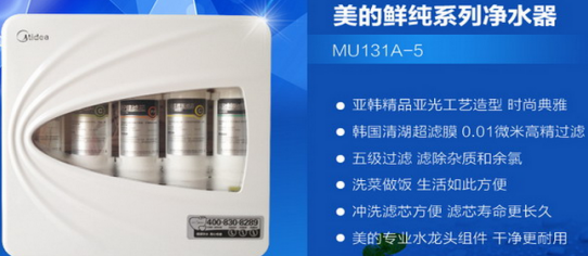 美的在净水技术上没有很大的优势,之所以能在净水器行业内迅速占领一席重要之地,全靠美的长期以来在家电行业累积的知名度和、以及优良的品牌口碑,不过,美的的家用净水器近两年在品质的提成和把控方面,发展速度还是很快的,为了能快速在新型家电行业内寻找突破点和站稳脚跟,美的的家用净水器在反渗透净水技术和产品品质把控、售后服务方面均有着吸引消费者之处。