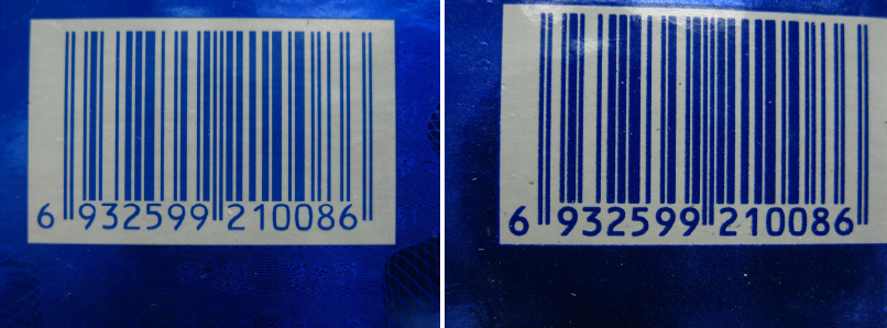 ②如下图所示,左边为真,右边为假,条形码的字体与条形码可以明显区别。真酒条形码旁边仔细看还会发现“海之蓝”字样。
