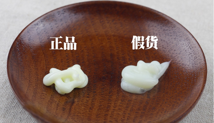 挤出同样多的真假伉美沅长效修护发膜的膏体,颜色上假货似乎略微比正品的淡些,正品的暖黄色泽;质地上,左边正品膏体粘稠,感觉相当细腻,而右边假货膏体是稀薄的,润滑度上也差了许多;至于气味上,正品的淡淡的香味假货也没仿到位,假货的味道要较为浓郁些,没有正品来得清新自然。
