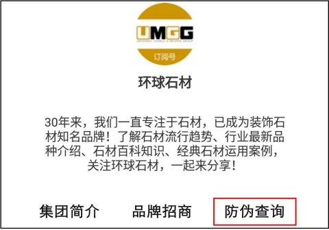 2、关注环球石材网站微信——环球石材,即可进行查询。(详细如下图)