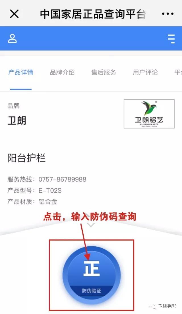 铝艺行业近几年来发展迅猛,市场需求量大,在利益的驱使下,不少缺乏创新能力的非法商家、厂家制假、贩假,以劣质产品模仿其它品牌、其它产品,严重欺骗消费者,损害消费者的权益。为了坚决维护市场秩序和消费者权益,作为铝艺行业领、品牌的卫朗铝艺自2017年起便正式加入“、家居正品查询平台”。