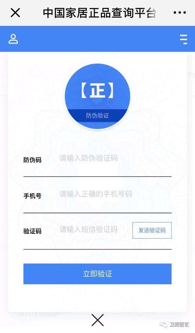 扫码后弹出上面的对话框,然后在对话框里输入6位防伪码和手机号,按“发送验证码”,随后输入手机所收到的验证码,后按“立即验证”↓↓