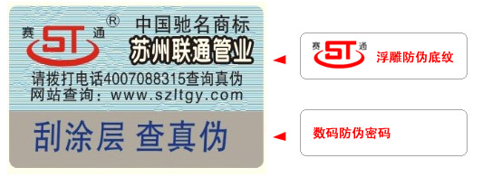 1.正确:"此产品是苏州联通管业有限公司生产的正牌产品,请放心使用.谢谢! 本条信息免费"。