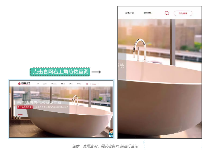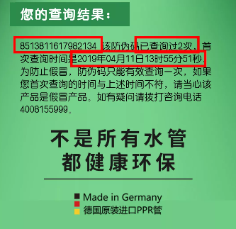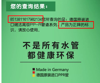 通过德国微法管网站的防伪查询,由网站输入防伪码。