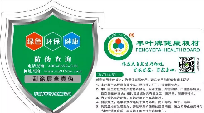 这个时候,你可能已经拿到丰叶牌健康板材产品了,正看着防伪标签呢,这个时候,先仔细看防伪标上的说明,一般情况下防伪标签包括以下几个部分:防伪码,这个防伪码一般情况下是被刮刮墨覆盖;第二部分是查询方式和说明,上面有提示“拨打查询电话按语音提示查询”等;这两部分就是防伪的主要组成部分,查询防伪就靠这两部分。其他部分会有别的防伪技术和公司logo等,多种情况下就是个装饰作用。说一下查询的步骤: