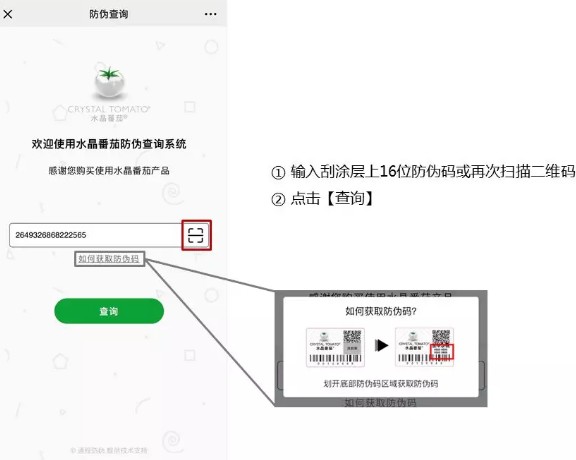 全新防伪查询升级:为更好保证消费者权益,我司对水晶蕃茄防伪查询进行全面升级,每个产品将带有唯一的防伪码,以供真伪查询。