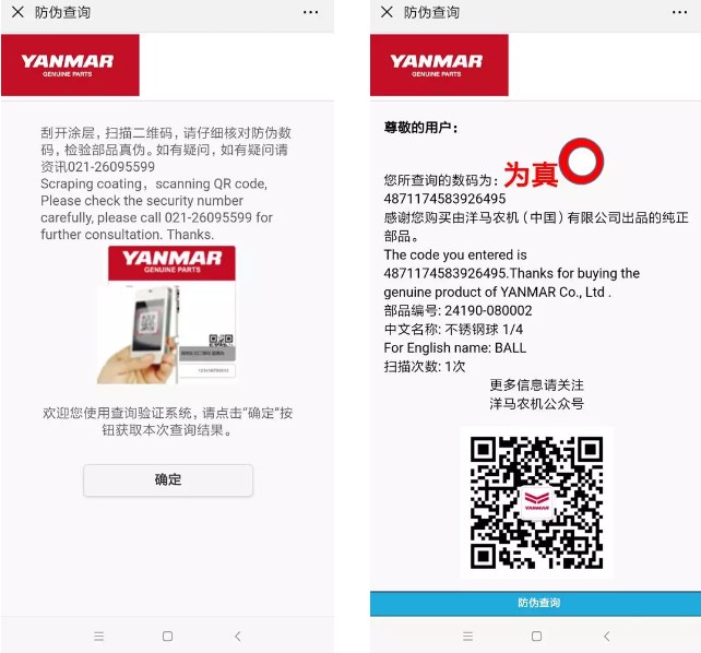 支持扫码与手动输入16位防伪码查询,查询结果同智能手机扫码查询。