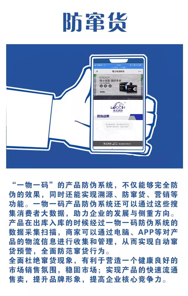 作为、知名蓄电池的、、企业,一直以来,理士汽车电池将提供优质的产品作为对客户以及消费者的承诺。但市场上假冒产品繁多,不仅侵犯了理士品牌形象也损害了消费者的权益。为了有效杜绝这一现象,理士汽车电池防伪二维码系统正式上线,能帮助消费者降低对商品的疑虑,同时为消费者制造了一个良好的购物环境。那么防伪二维码有什么作用去保护产品不受假货的困扰呢。