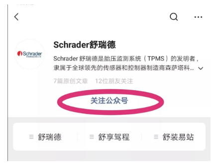 第一步关注“Schrader舒瑞德”网站微信公众号并进入公众号