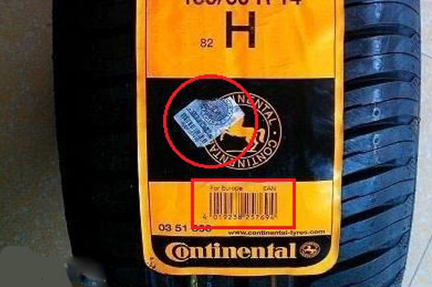 防伪标识,正品的防伪标志都有不规则的刀痕以保证撕下之后不能再使用,也可以登录德国马牌轮胎网站网站查询验证防伪号码。
