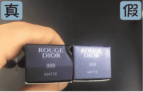 首先是外包装的印刷问题,正品的迪奥999LOGO处的凸出印刷,采用的是似断非断的感觉。而假货的迪奥999LOGO处的凸出印刷则是直接断开的。