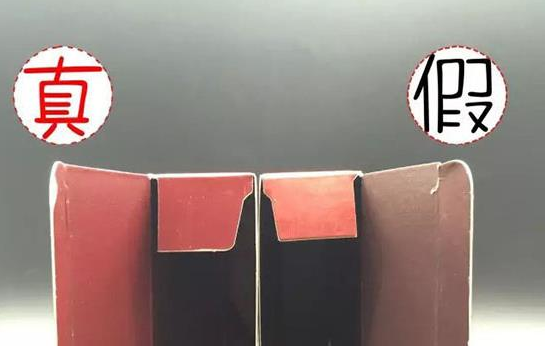 正品内衬盒是深红色且有环保标识,假货是豆沙色且没有标识。