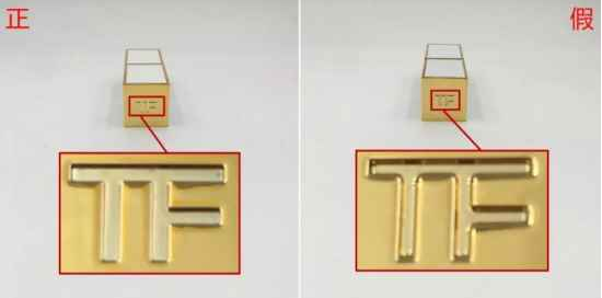 正品膏体上的TF压印十分精致,而假货的TF压印里则有一种颗粒的质感,显得更加粗糙一些。