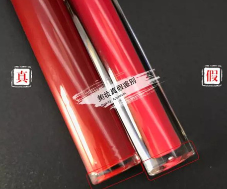 正品瓶底管身透明部分少,假货瓶底透明部分多。