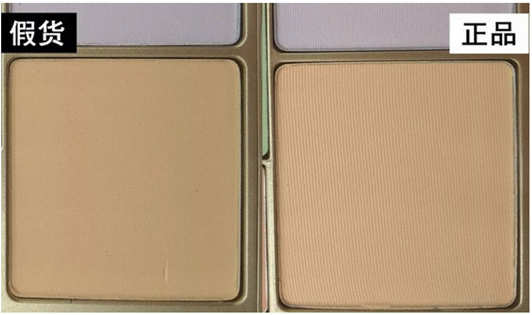 两块粉饼的表面,正品他是有这种纹路的,比较明显,假货的这两块粉饼上的纹路就更细更小一些,跟正品的相比,就不太好看出来。
