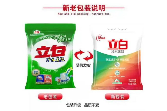 优质立白洗衣粉,包装袋印刷清晰,无错版及油墨污染现象,假冒名牌洗衣粉,包装多数是印刷厂剔出来的废品,有错版及油墨污染现象。