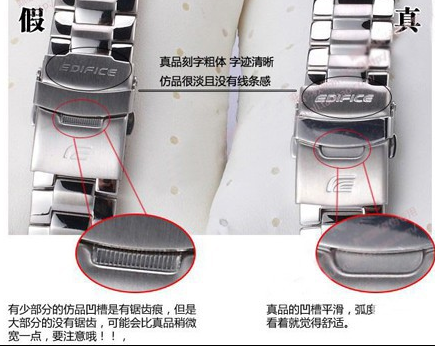 4、查看隐藏的地方,观察所有的棱角,比如表带内侧(头部有数字)。这些是假表、难做的事情,也是买家、容易忽视的事情。