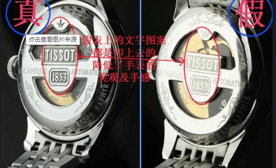 仔细看天梭表底盖上打着的一切和数字有关的标识,假表的通常毫无规律,甚至和真表的位数都对应不上。真表则是每只独立编号。