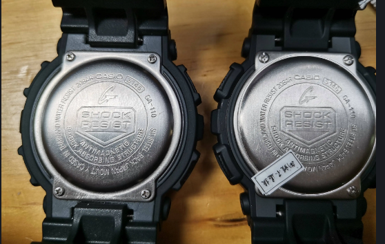 5、正品CASIO手表表带的衔接紧密,其衔接处的缝隙也小且规范。而仿品的表带衔接松散,不但有明显缝隙,而且缝隙有大有小。