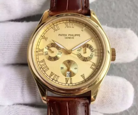 第四、一些仿表模仿了百达翡丽的一些著名款式。例如,它们具有30分钟计时和万年历功能。12点钟附近的小窗口分别显示星期和月份。有的手表厂家,把显示星期的窗口改成显示年份的窗口,显示的频率更高。