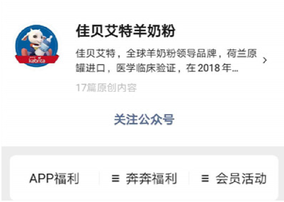 首先,微信关注佳贝艾特羊奶粉公众号。