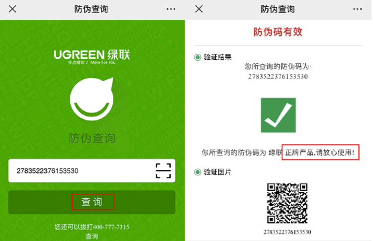 防伪码查询,可以快速验证绿联产品的真伪。