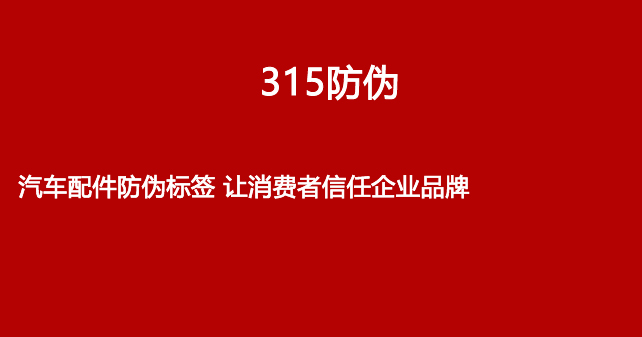 315防伪技术能有效解决欺诈问题。为汽车配件产品定制防伪标签,防止假冒,保持产品市场稳定,易于识别真伪,树立品牌形象,防止利益损失,使假货无处藏身。