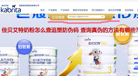 除了微信公众号外,也可以在佳贝艾特网站上查询真伪。首先登录佳贝艾特网站,在首页、端的中部就可以看到溯源的查询框: