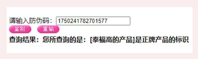 直接在页面上输入防伪码,点击鉴别,就可以查询啦!