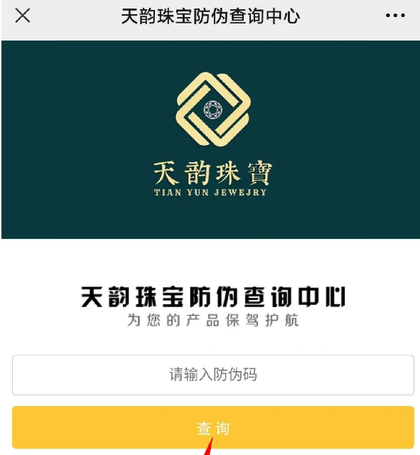 天韵珠宝防伪管理系统更新,现唯一查询防伪通道为公众号查询。