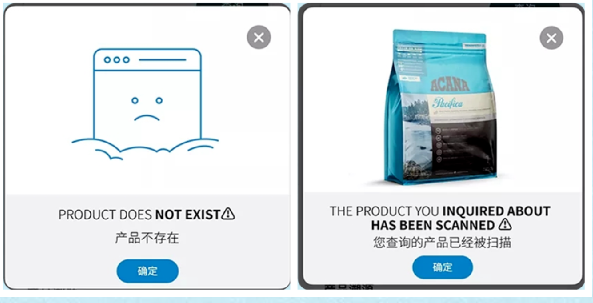 系统提示【您查询的产品已经被扫描】;