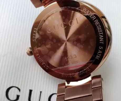 古驰手表的表链和表扣也具有很高的辨识度。正品表的链节之间连接紧密,打磨精细,手感顺滑。而仿冒品往往连接不规整,边缘粗糙,甚至出现毛刺。此外,表扣上的Gucci标志也应清晰可见,无模糊或重影现象。