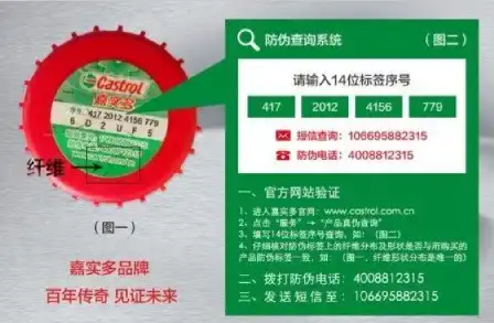 嘉实多防伪码是一种独特的身份识别码,印在嘉实多润滑油产品的标签上。它由一组数字和字母组成,具有唯一和可追溯。通过查询防伪码,消费者可以确认产品的真实和来源。