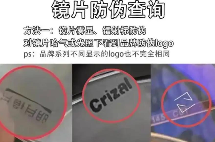 部分品牌镜片采用雾显防伪技术。这种技术通过在镜片表面或边缘刻制微小的品牌标志、字母或数字编号等防伪标识,这些标识在特定角度下才能观察到。例如,依视路镜片在未擦去保护膜时,对着镜片哈一口气,会出现“Crizal”的英文标识(除蓝晶以外)。消费者可以根据这一特征来辨别真伪。
