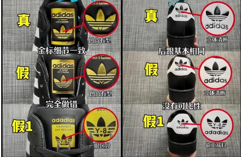 正品阿迪达斯鞋的标志清晰,字母间距均匀,无错位或模糊。检查鞋舌、鞋跟、鞋侧以及包装盒上的logo是否精致且立体。真品的缝线均匀,无松散或断裂,且logo处的针脚密度一致。