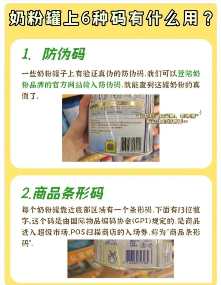 ‌2、寻找防伪码‌:不同品牌的奶粉,防伪码的位置可能略有差异。有些品牌的防伪码印在奶粉罐底部,有些则印在侧面或正面的标签上。消费者需要仔细查看,找到防伪码的具体位置。
