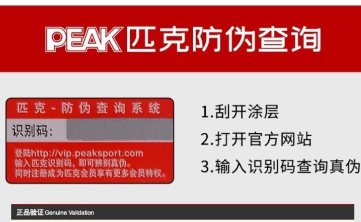 务必通过匹克官方提供的查询途径进行防伪码查询,避免使用不明来源的第三方查询平台,以防获取到虚假的查询结果。